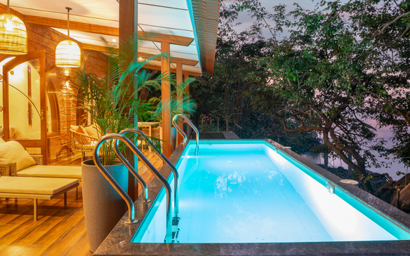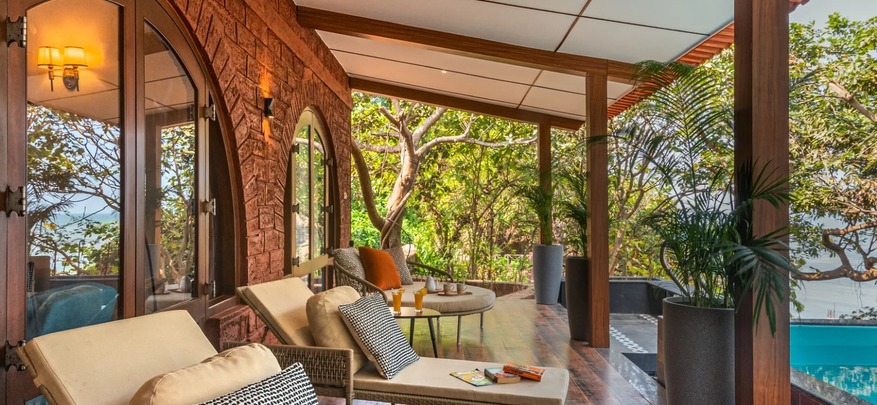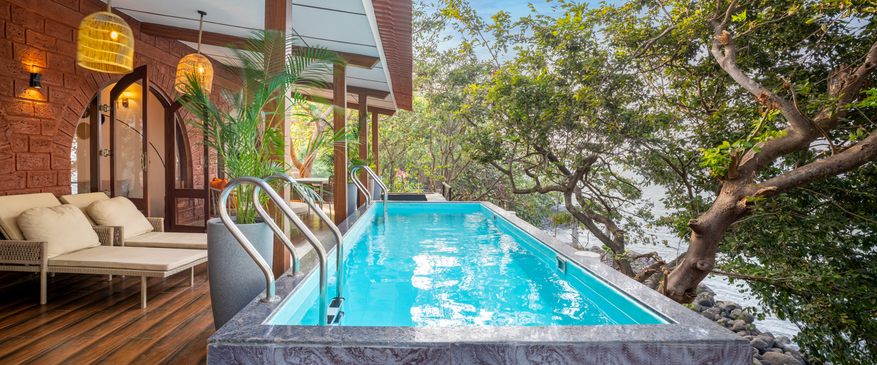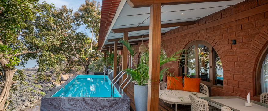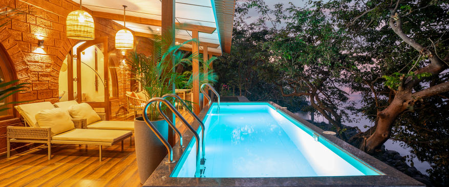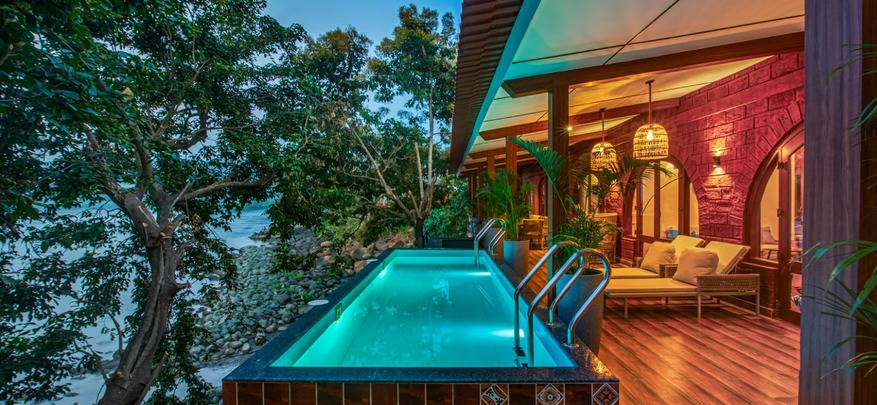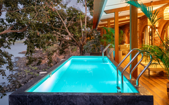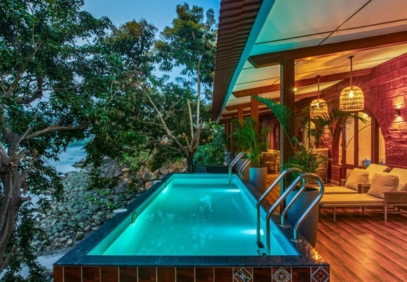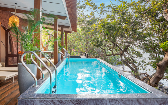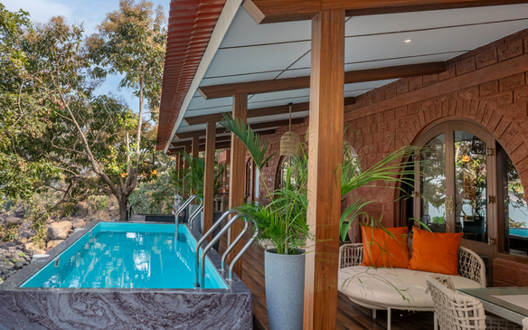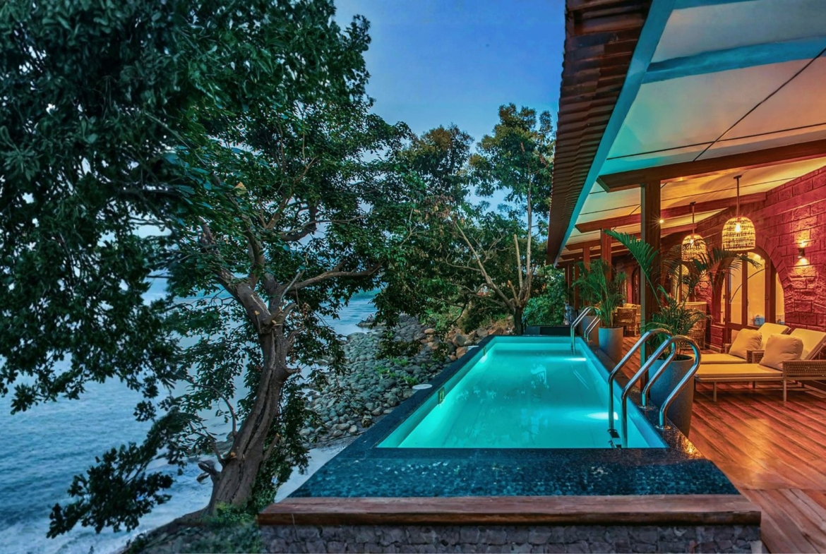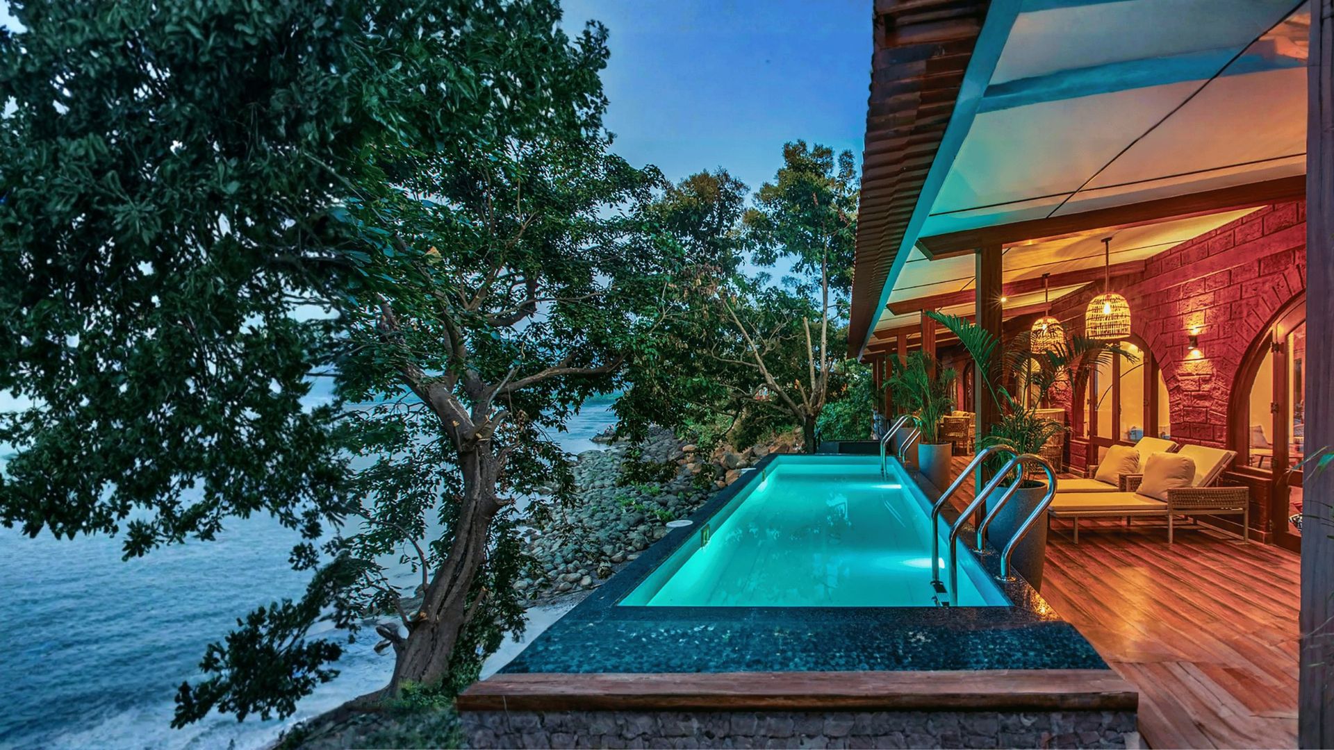 Highlights: The pool on the first level sits right at the seashore, clad in natural Laterite stone for a rustic coastal appeal.