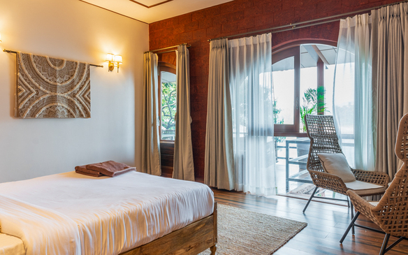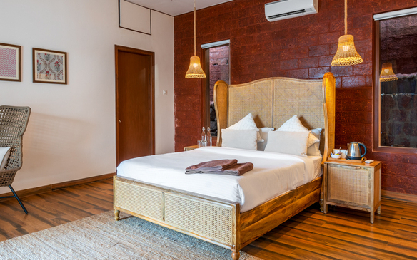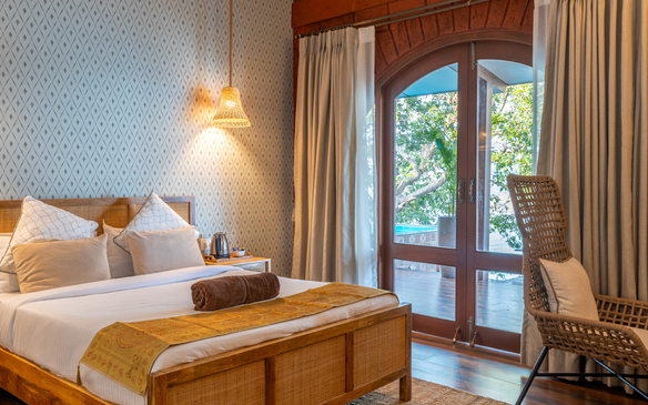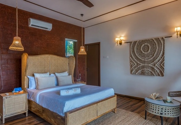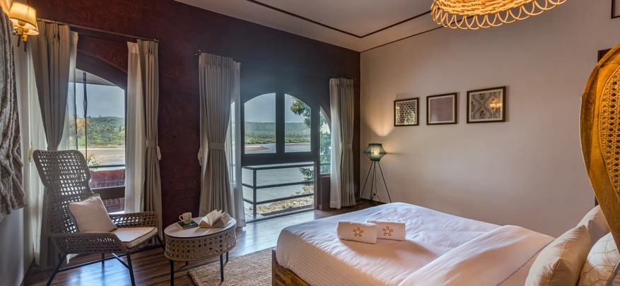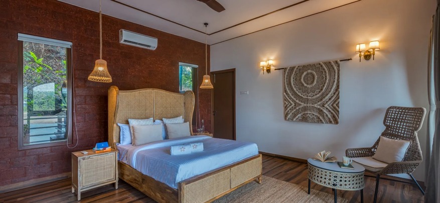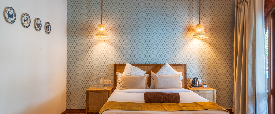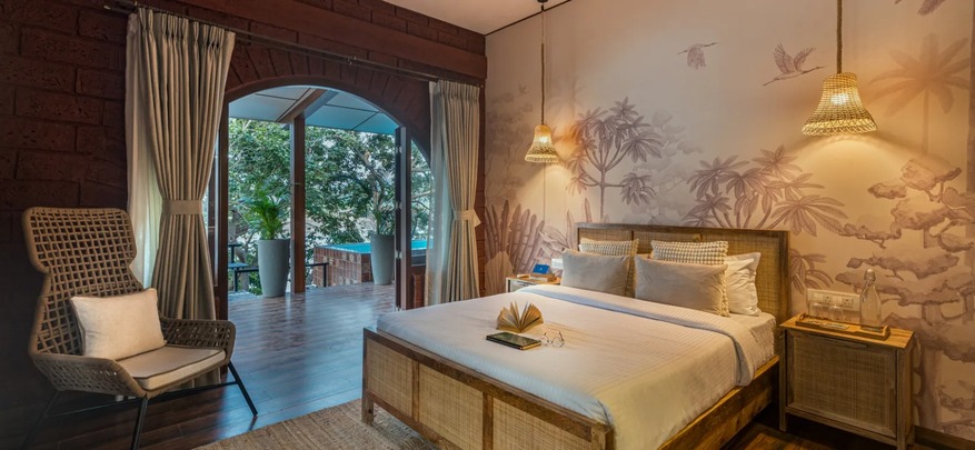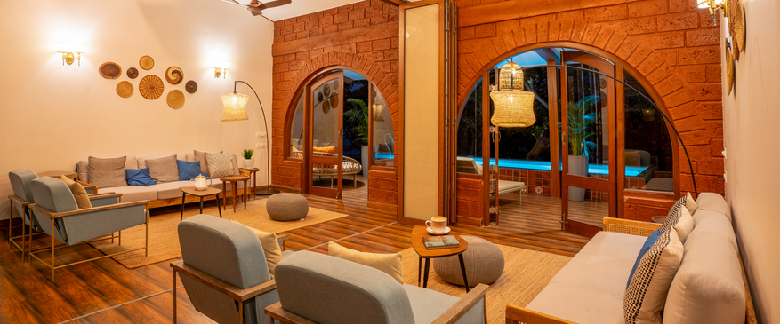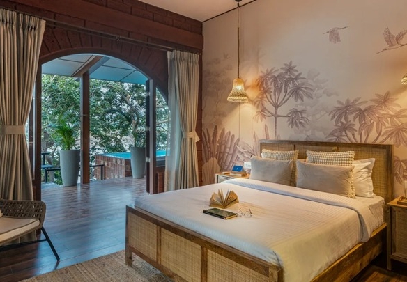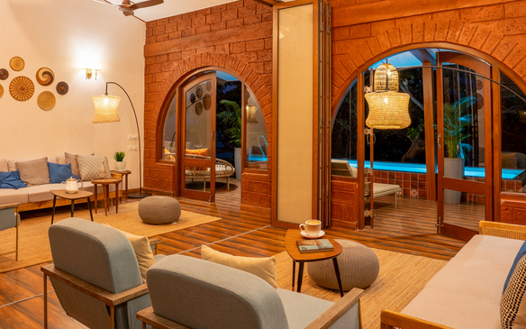 Nestled in a stunning locale, Athang blends serenity and drama—a tranquil river embraced by lush trees, with the distant sea painting a new sunset every evening.As a homestay, Athang was designed for instant rejuvenation, offering curated experiences for all—a romantic dining pad, a kids’ pool, a hammock for book lovers, and a versatile deck for gatherings. Every space has a distinct vibe. Built with laterite stone, wood, and jute, Athang blends vernacular charm with smart design, ensuring year-round comfort.