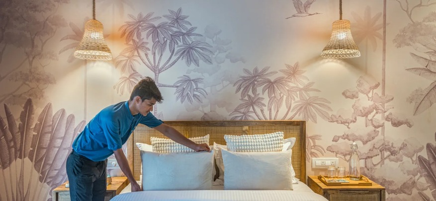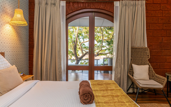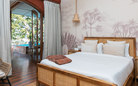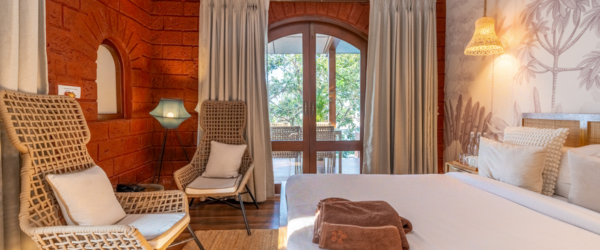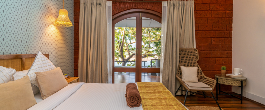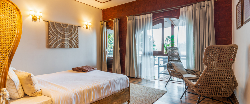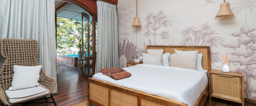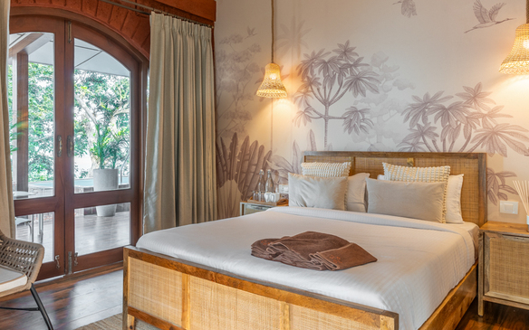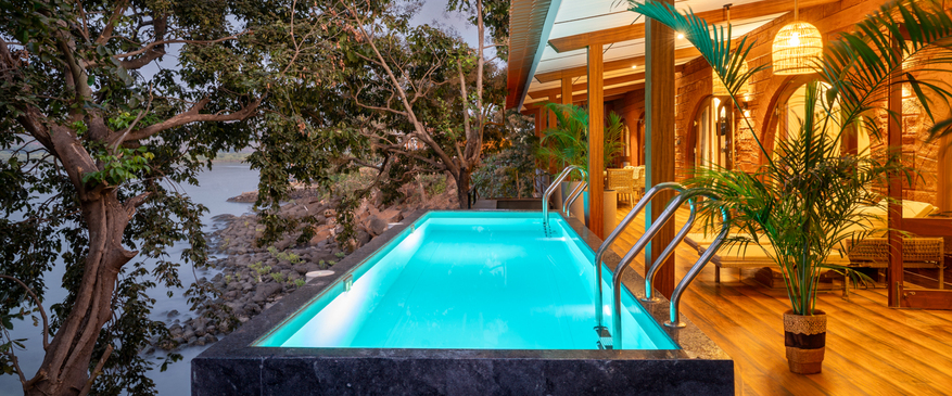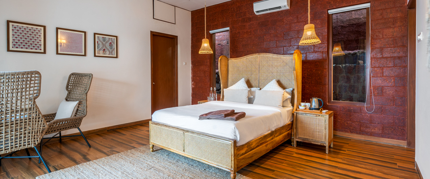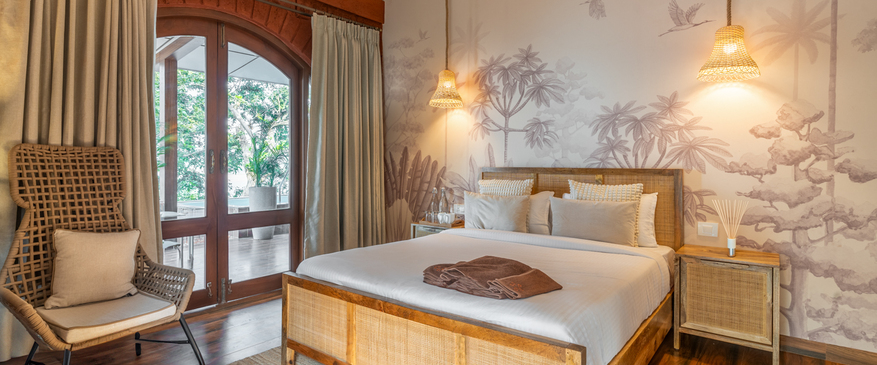 Nestled in a stunning locale, Athang blends serenity and drama—a tranquil river embraced by lush trees, with the distant sea painting a new sunset every evening.As a homestay, Athang was designed for instant rejuvenation, offering curated experiences for all—a romantic dining pad, a kids’ pool, a hammock for book lovers, and a versatile deck for gatherings. Every space has a distinct vibe. Built with laterite stone, wood, and jute, Athang blends vernacular charm with smart design, ensuring year-round comfort.