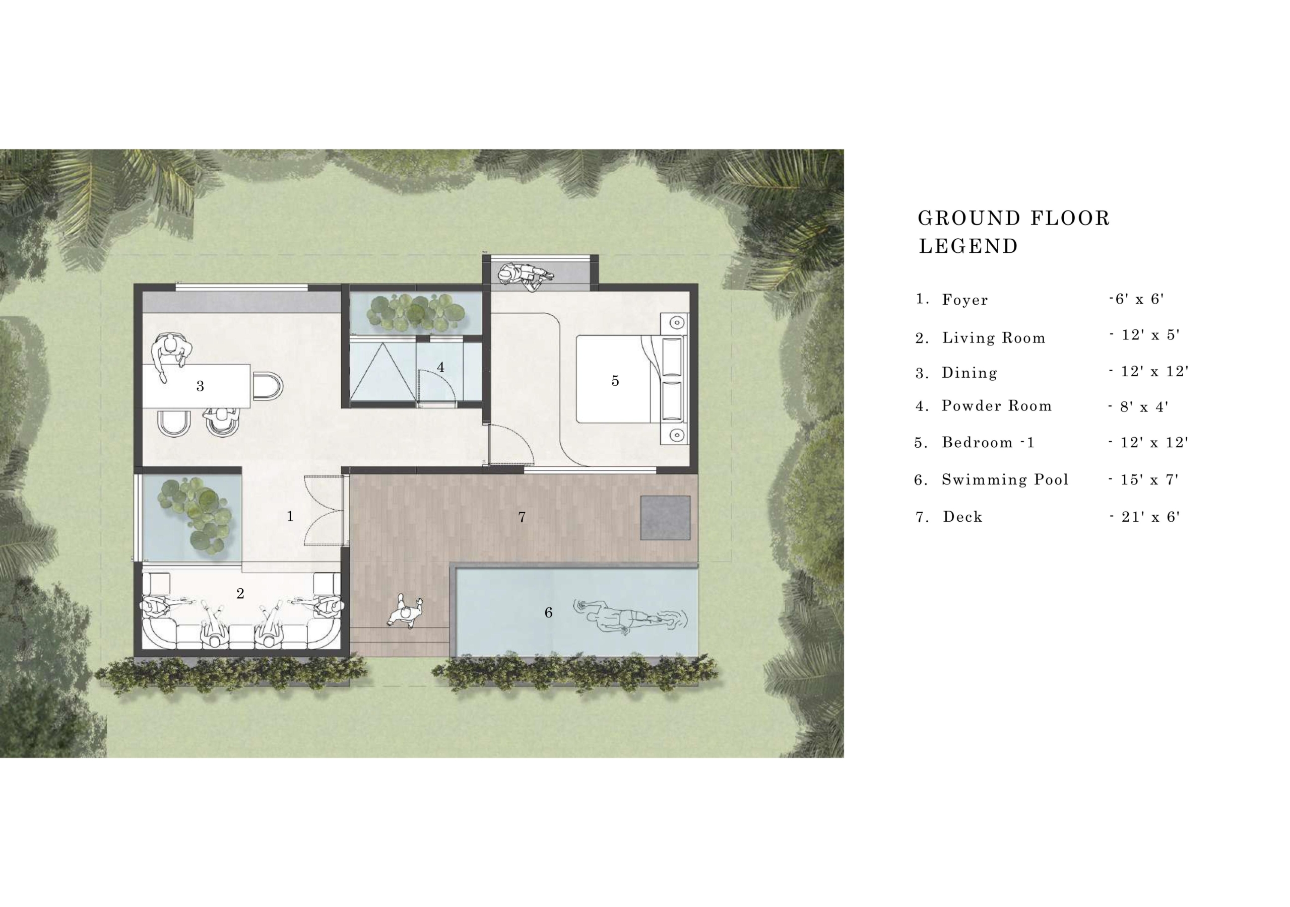 1 Living, 1 bedroom, 3 bathroom, Deck – 388 sq ft