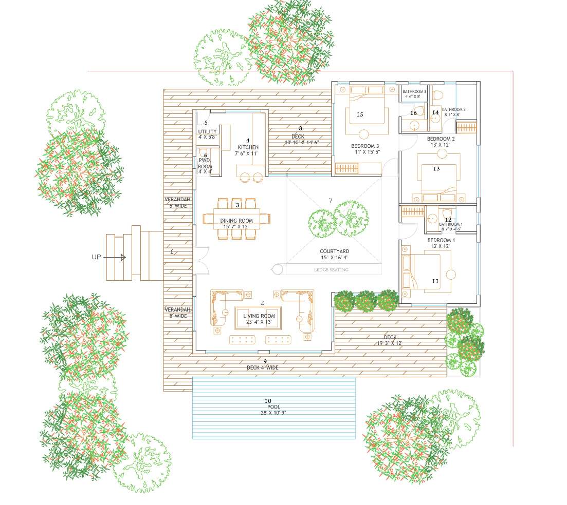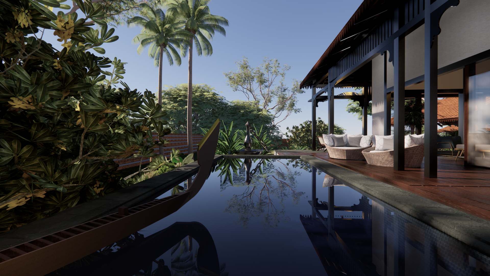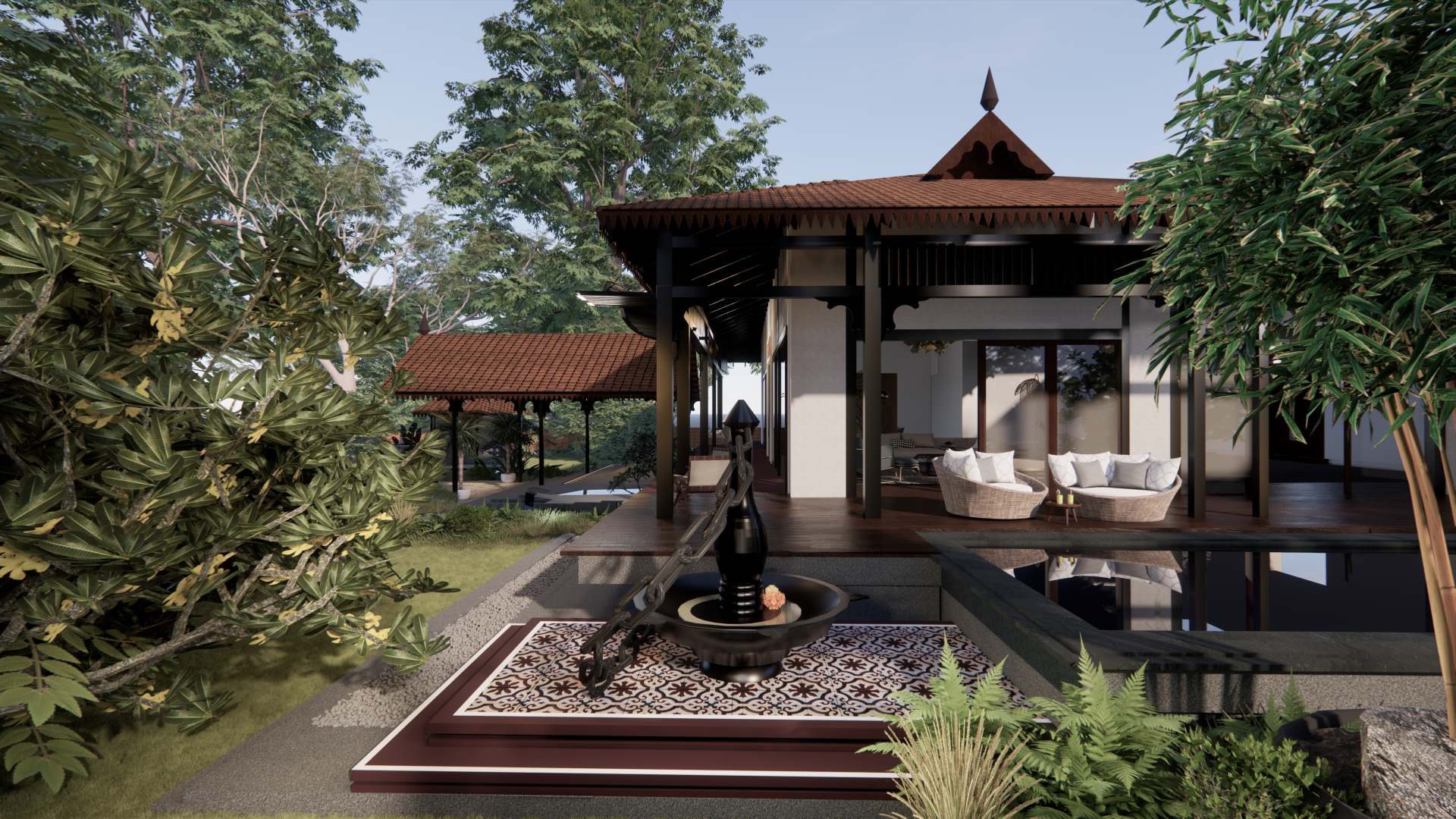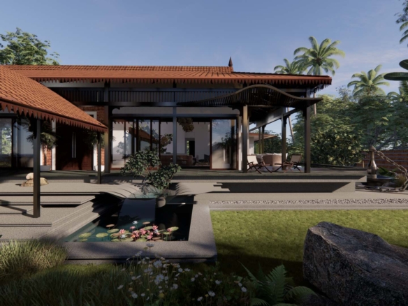 A traditional Kerala-themed courtyard house in Karjat, designed to embrace openness and natural living. The home features a central courtyard that allows light, air, and greenery to flow through the spaces, creating a strong connection with nature. Exposed steel columns add a subtle contemporary aesthetic, beautifully balancing traditional character with modern design