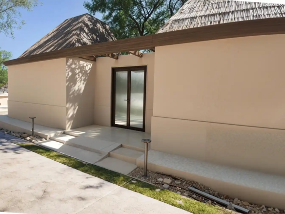Nestled within the GIR Forest, this Nature Pod project for the Reliance Forest Reserve Team is designed to blend seamlessly with nature. Featuring synthetic thatch roofing and a traditional mud paint finish, the pods offer a calm, earthy retreat that respects the forest environment while providing comfort.