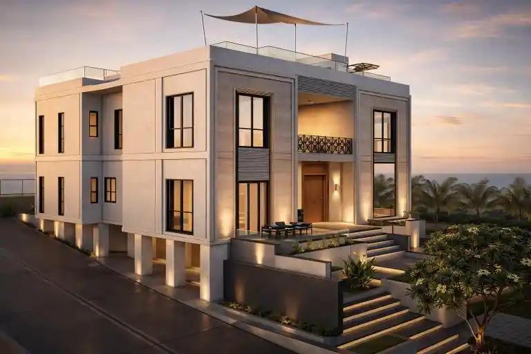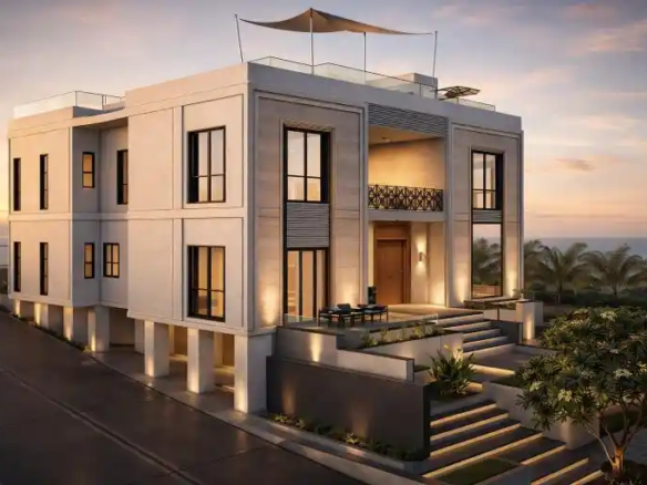 A contemporary villa designed to blend modern architecture with nature. Featuring clean lines, green balconies, and open terraces, the home offers seamless indoor–outdoor living with abundant light and ventilation. Built using prefabricated construction for faster delivery and superior quality.