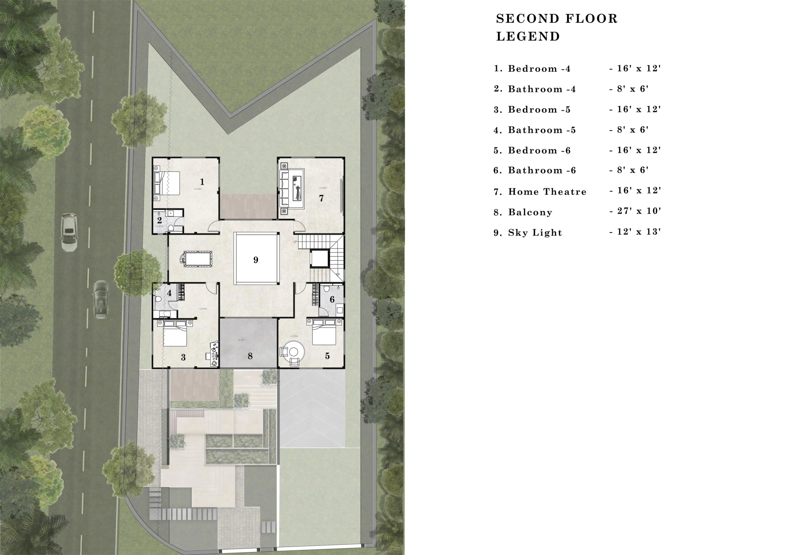 6BHK| Stilt+2 Stilt Floor : 342 SQ.FT First Floor: 2374 SQ. FT Second Floor :2210 SQ.FT Terrace Floor :241 SQ.FT Total Built up area – 5168 SQ.FT