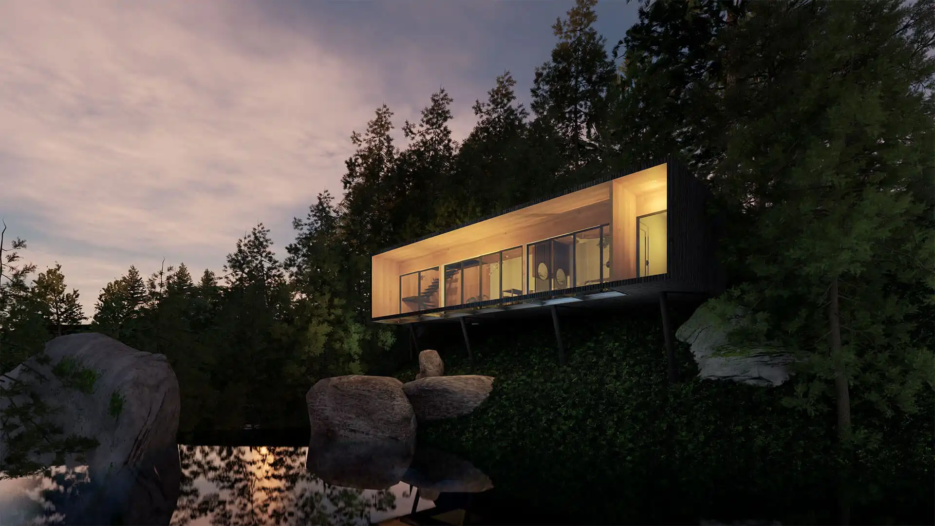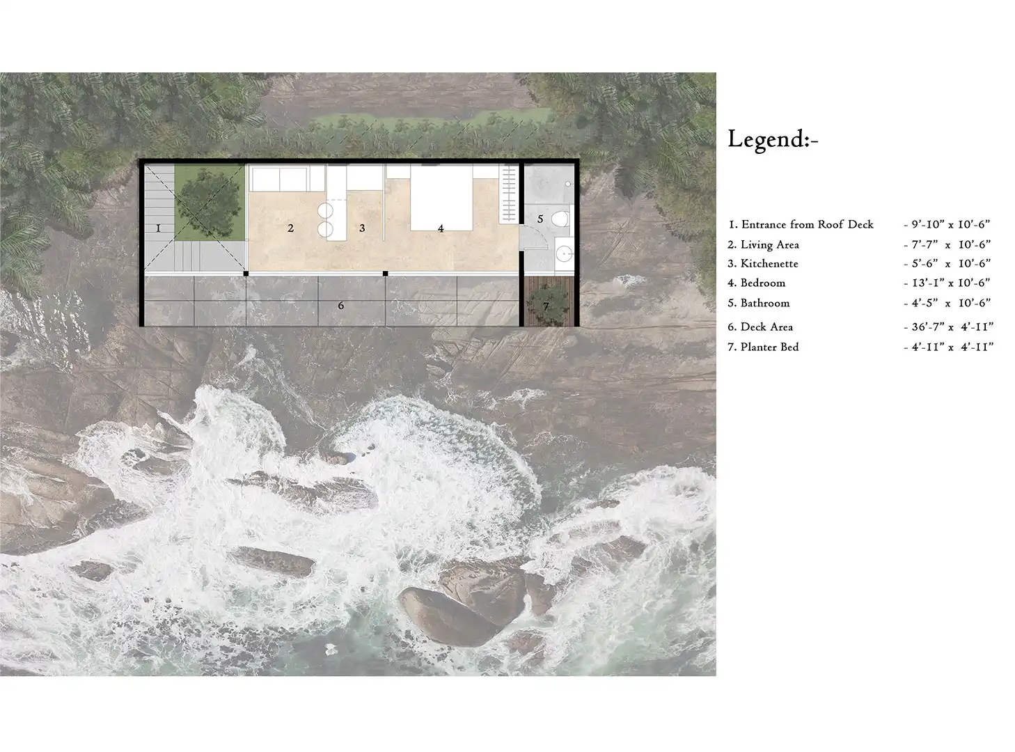 The portable 30’ x 60’ container cabin takes inspiration from the intricacy held within a simple box. Exuding luxury the expansive cabin takes you to newer heights of extraordinary with an accessible roof, soaking in the serenity.