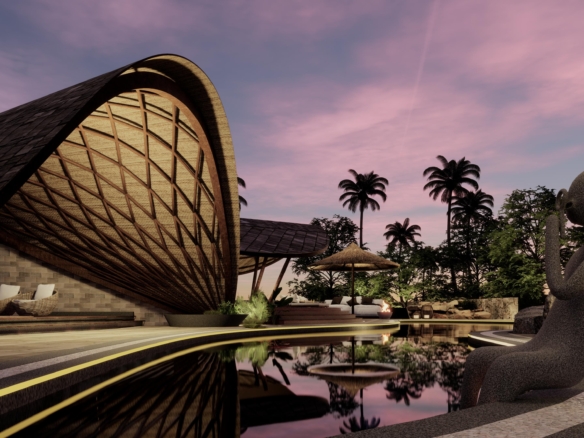 The design of the villa captures the true essence of the island. Imbibing the traditional architectural principles and carefully crafted details, the estate is a portal to the tropical paradise of Bali.
