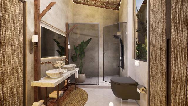 The Balinese Chalet Series Villa by Mulberry is designed to offer an authentic experience of a tropical resort. An ode to the architecture of Bali, the villa delicately balances modern-day luxuries with traditional design principles. This three-bedroom luxury villa spread across 3100 Sq.ft. draws inspiration from