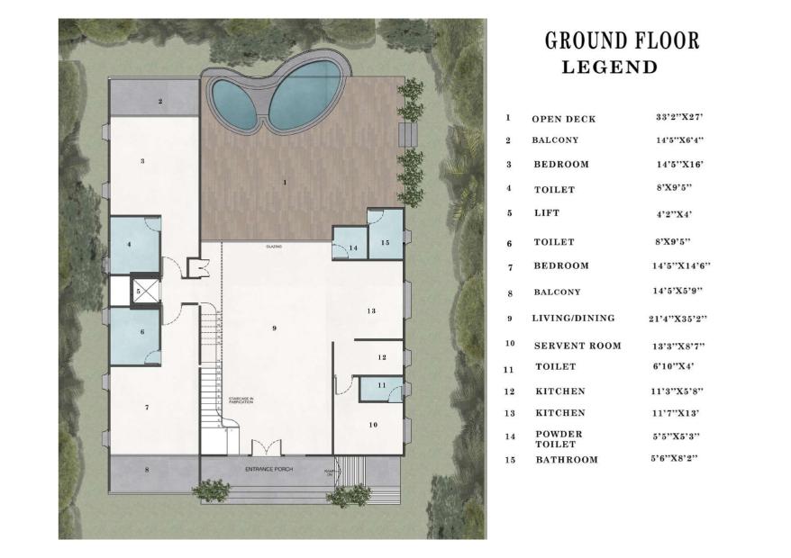1 Living, 4bedroom, 4 bathroom, Deck – 600sq ft, Swimming Pool – 350sqft