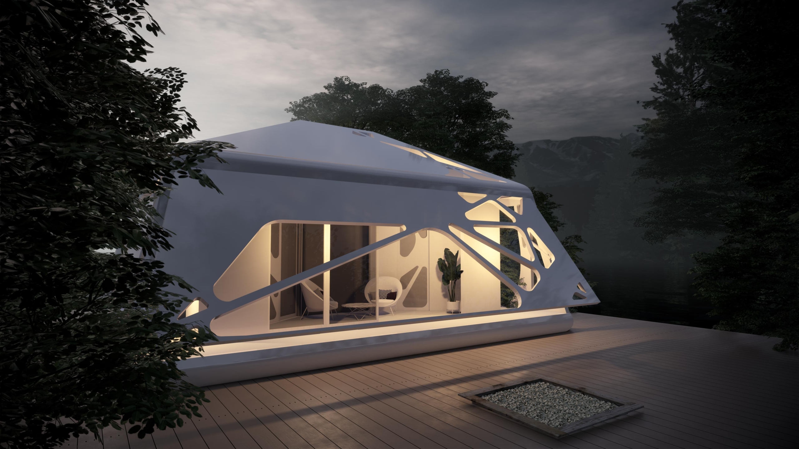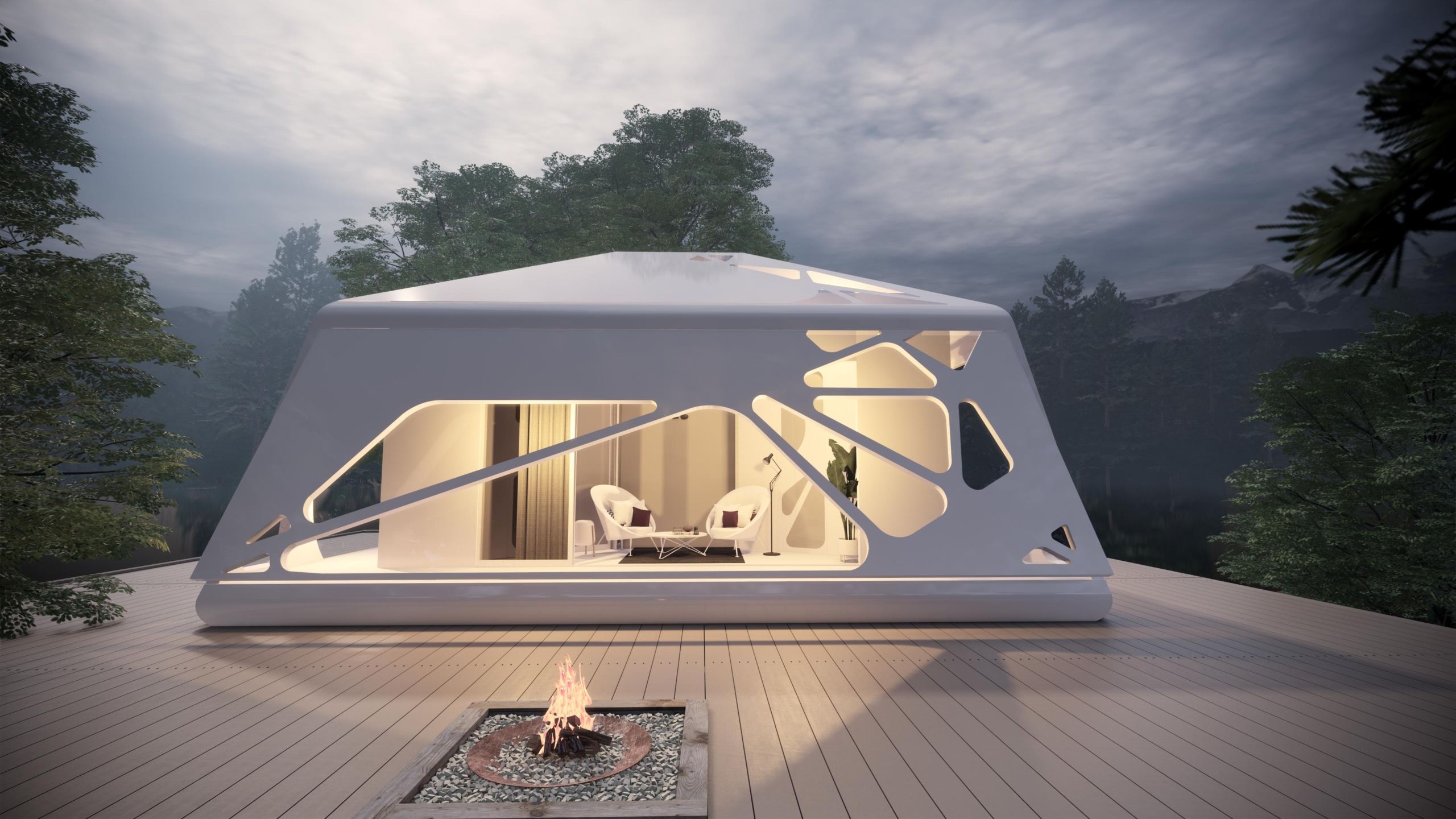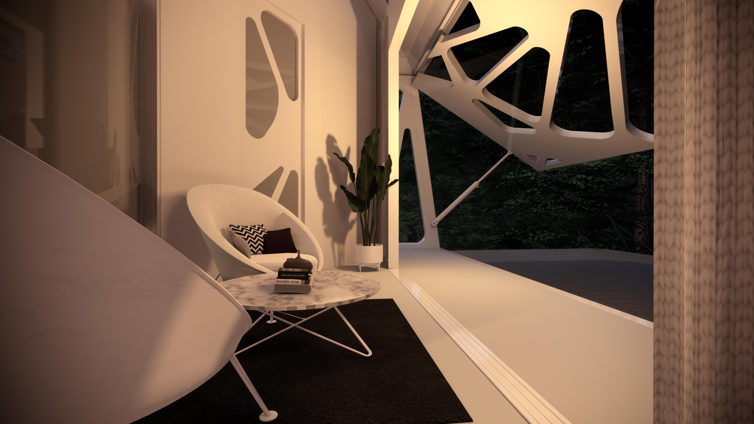 Welcome aboard a design that is way ahead of its time; immersed in ornate patterns, The Nook unveils 360-degree access to experience a never-seen-before take on experiencing captivating outdoors through a futuristic design. The punctured design of the pod invites nature through the beaming skylights or the vast openings, creating an innate affair that embraces luxury living.
