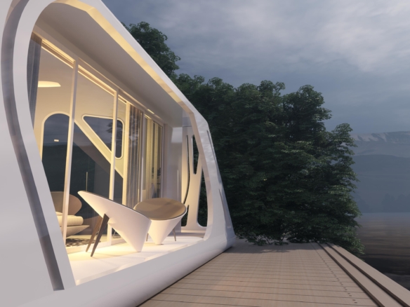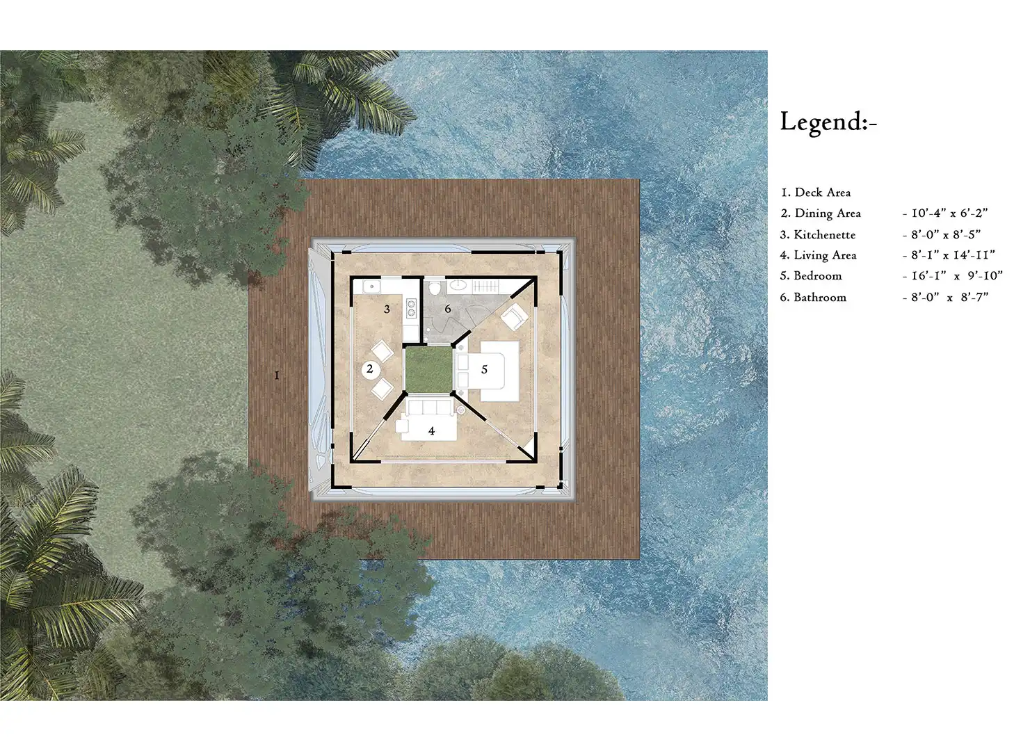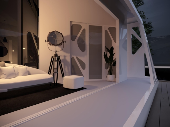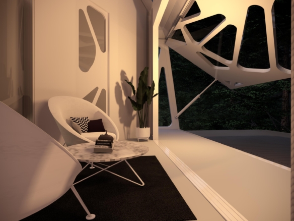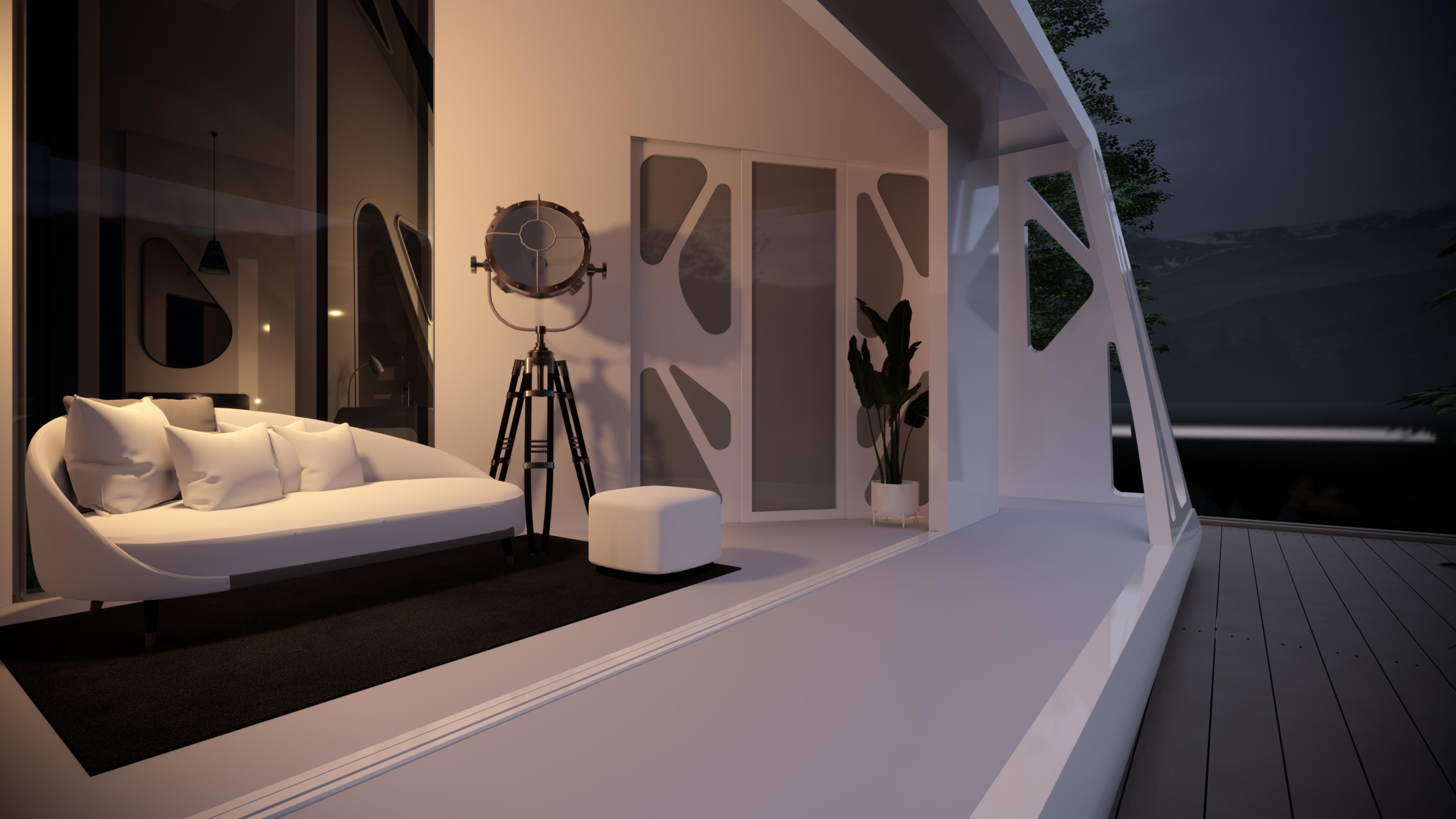 Welcome aboard a design that is way ahead of its time; immersed in ornate patterns, The Nook unveils 360-degree access to experience a never-seen-before take on experiencing captivating outdoors through a futuristic design. The punctured design of the pod invites nature through the beaming skylights or the vast openings, creating an innate affair that embraces luxury living.