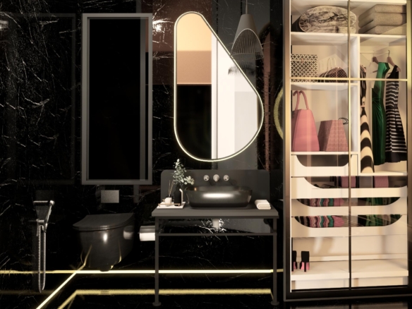 Spanning across 950 sq. ft of a radial layout, The Nook introduces layered spaces including a living area, bedroom, washroom, and dining space with an attached kitchen. The innermost layer connects all the areas through a seamless curvature, linking all the spaces with each other to create a cohesive look.